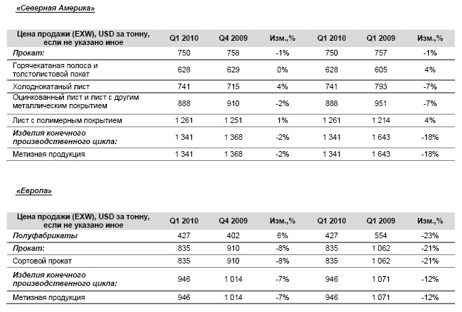 ОАО "Северсталь" объявляет операционные результаты за первый квартал 2010 года.