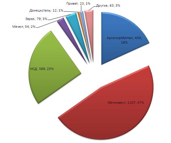 | АрселорМиттал | 447 | 430 | -3,8 | 2012 | 2152 | 7 |