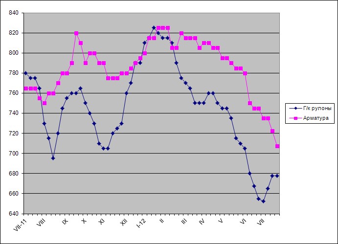 Выравниванию котировок способствовали не только согласованные действия американских металлургов, дружно попытавшихся реализовать повышение, но и объявленные производителями остановки прокатных станов на ремонт и профилактику. Объем предложения в июле в результате сократился по сравнению с предыдущим месяцем. Кроме того, немаловажную роль сыграл вынужденный уход с рынка обанкротившейся компании RG Steel. Ранее она вела агрессивную политику, неизменно предлагая прокат дешевле своих конкурентов, что способствовало дальнейшему ослаблению рынка.