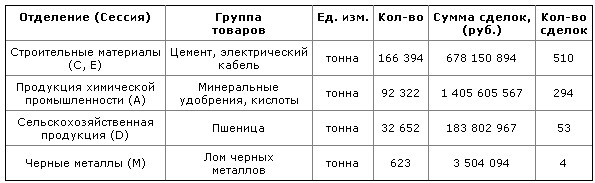На торгах в отделении "Черные металлы" за первое полугодие 2012 года реализовано 623 тонны товаров, на общую сумму более 3 млн. руб., заключено 4 сделки.