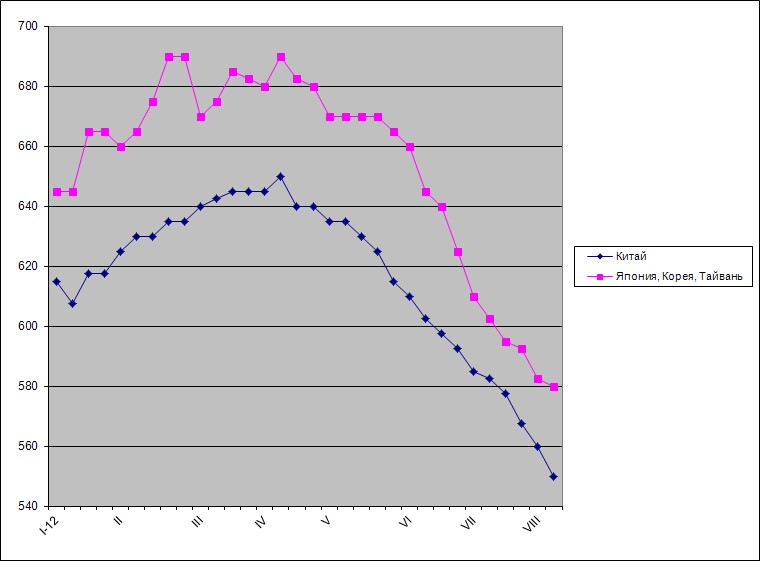 Корейские компании за первые шесть месяцев текущего года экспортировали толстолистовой стали на 76% больше, чем за тот же период годичной давности. При поставках в Японию рост превысил 60%. При этом, результат был бы еще выше, если бы компания Dongkuk Steel Mill не остановила бы в начале второго квартала толстолистовой стан производительностью 1,3 млн. т в год. С японскими и корейскими компаниями ожесточенно конкурируют китайцы. В начале августа они сбавили цены на толстый лист до около $530-540 за т FOB, что также является минимальным показателем более чем за два с половиной года.