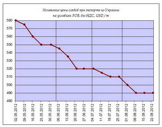 В отличие от длинномерного проката, в сегменте слябов и листа в июле-августе наблюдалось затишье. Более того, по некоторым товарным позициям продолжилось падение цен. Например, по данным "МК", толстолистовой прокат в августе подешевел на 15 долл., с 575 долл./тонн до 560 долл./тонн. Стоимость слябов в течение августа оставалась на стабильно низком уровне – 495 долл., а горячекатаные рулоны в конце второй декады августа подешевели на 5 долл., до 548 долл./тонн. Аналогичную информацию дают аналитики УПЭ. По их данным, в начале августа стоимость слябов снизилась на 10 долл., до 490 долл./тонн, и в течение месяца оставалась на этом уровне. Стоимость горяче- и холоднокатаных рулонов была стабильной, начиная с 9 августа – 555 и 640 долл./тонн соответственно. А вот толстый лист подешевел с 600 долл./тонн в начале августа до 590 долл./тонн в середине месяца.