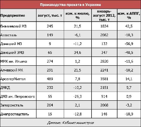 | 01.08.2012 | 01.09.2012 | Изменение цены (%) | Изменение цены (грн./т) | ||
