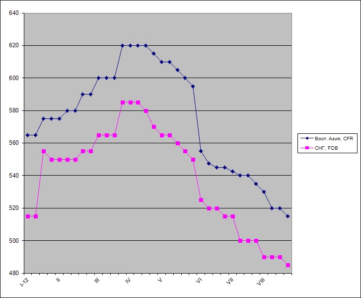 В августе российские компании предлагали полуфабрикаты производства западносибирских заводов примерно по $475-480 за т FOB Владивосток, что соответствовало около $500 за т CFR на Тайване. Японские и корейские интегрированные комбинаты, снизившие себестоимость выплавки стали благодаря сокращению затрат на резко подешевевшую железную руду и коксующийся уголь, в конце прошлого месяца предлагали слябы на Тайвань по $500-530 за т CFR, но пока они не готовы к дальнейшему понижению. Латиноамериканские производители вообще находятся вне азиатского рынка, так как стоимость их продукции составляет не менее $565-585 за т CFR. По мнению специалистов, даже в самом худшем для них случае они не могут опустить цены для азиатских покупателей до менее $505-510 за т CFR.
