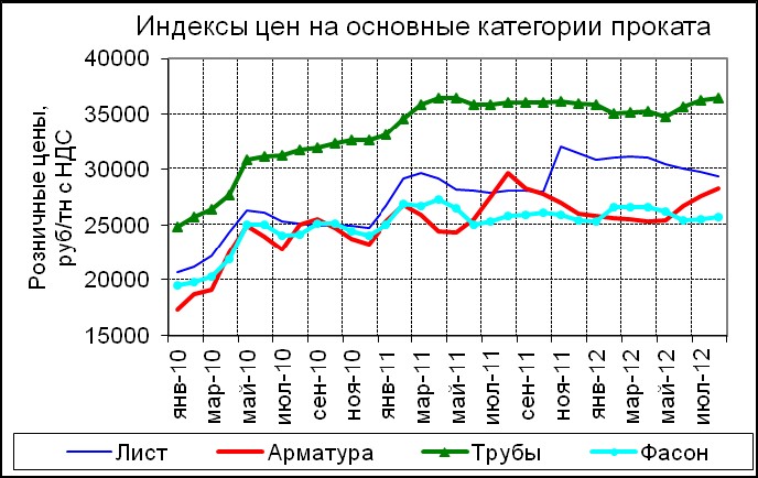 Сортовой прокат, в том числе арматура и фасон (кроме балки), – уверенный рост на 2-4% с дальнейшим сохранением тренда в октябре. Балка, листовой прокат и трубы – несущественные колебания вокруг достигнутого уровня.