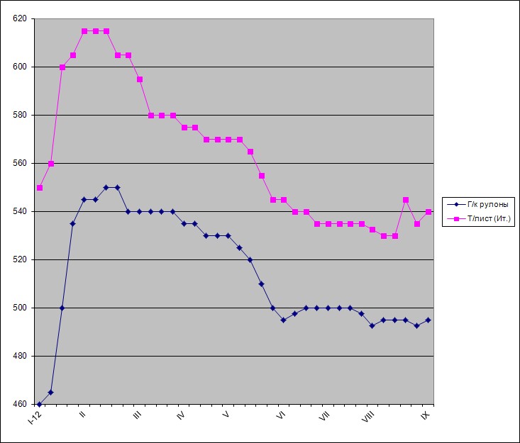 В других странах региона производители имели меньший успех. Наоборот, потребители, возобновив закупки в конце августа ? начале сентября, смогли добиться от поставщиков определенных уступок. В частности, в Германии стоимость горячекатаных рулонов приблизилась к отметке 500 евро за т EXW, хотя в августе могла достигать 520-530 евро за т EXW.
