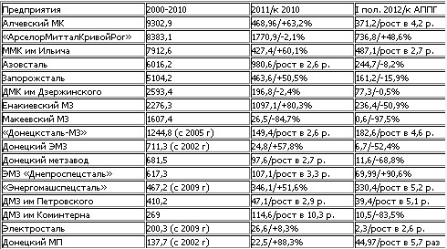 Напомню, в 2011-2012 гг. были выведены из эксплуатации также мартеновские цехи на меткомбинате «Азовсталь» и Донецком метзаводе.