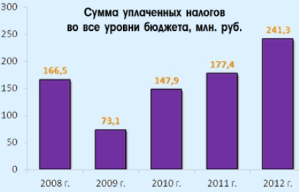Социальную ответственности ОАО "Уралмеханобр" пред обществом наглядно демонстрируют суммы налогов, ежегодно перечисляемых институтом в бюджеты всех уровней:
