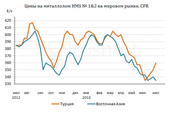 Во второй половине июня на турецком рынке металлолома началось долгожданное повышение цен. Местные металлургические компании, добившись увеличения стоимости готового проката, расширили закупки сырья. При этом, потребители, как правило, не располагали значительными его запасами, поэтому были вынуждены спешить, в то время как объем предложения, наоборот, был относительно небольшим. В частности, экспорт ограничивали американские компании, в последнее время переориентировавшиеся на внутренний рынок.