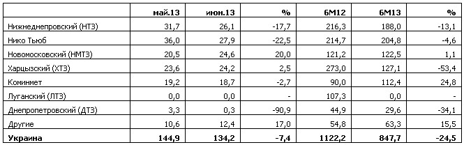 Показатели работы трубных предприятий Украины в июне 2013 г., тыс. т: