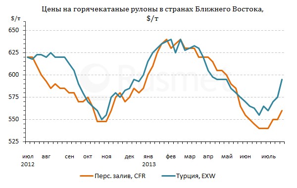 Так, РІ странах Персидского залива стоимость горячекатаных рулонов прибавила, РІ среднем, $10 Р·Р° С‚ РїРѕ сравнению СЃ серединой июля. Р?нициативу проявили, прежде всего, азиатские металлургические компании РІ рамках общего РїРѕРІС‹С?ения экспортных котировок. Горячий прокат РёРЅРґРёР№СЃРєРѕРіРѕ производства, который предлагался РІ первой половине июля РїРѕ $540-550 Р·Р° С‚ CFR, подорожал РґРѕ около $550-560 Р·Р° С‚ CFR. Рђ китайская, корейская Рё японская продукция РІС‹С?ла РЅР° уровень $560-575 Р·Р° С‚ CFR. РџСЂРё этом, металлурги рассчитывают РЅР° дальнейС?ее РїРѕРІС‹С?ение котировок РІ ближайС?РёРµ месяцы.