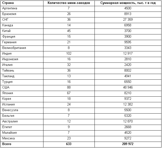 Источник: А. Смирнов "Металлургические мини-заводы", 2005 -- Русмет