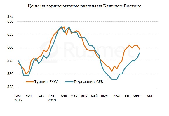 Спрос на листовую сталь в странах Ближнего Востока в конце августа – начале сентября не отличался активностью. Потребители использовали запасы продукции, приобретенной в предыдущем месяце. Кроме того, значительное влияние на рынок оказывает "сирийский" фактор. Пока ситуация вокруг Сирии не определится тем или иным образом, региональные покупатели, очевидно, будут воздерживаться от существенных закупок.