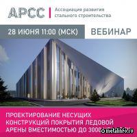 28 июня 2023 г. в 11:00 (МСК) Ассоциация развития стального строительства (АРСС) проведет бесплатный вебинар на тему «Проектирование несущих конструкций покрытия ледовой арены вместимостью до 3000 человек».